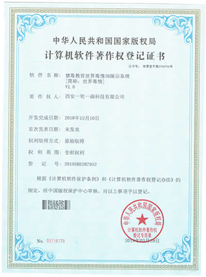 西安一筆一畫科技有限公司擁有《3C管理體系認證》|《3A信用等級》|《展館雙甲資質(zhì)》《招投標證件》|《展覽業(yè)10大影響力品牌》|《環(huán)藝雙甲資質(zhì)》|《禁毒教育拒毒心理測試系統(tǒng)軟著》|《飛奪瀘定橋歷史重現(xiàn)虛擬體驗軟件軟著》|《禁毒教育世界毒情3D演示系統(tǒng)軟著》等等,是您可以信賴的展廳教育基地設計施工企業(yè)!